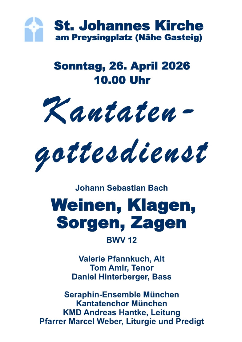 Ostern rückt näher und damit auch das Karfreitagskonzert des Kantatenchores München, zu dem wir Sie herzlich einladen. Dieses Jahr steht die Johannespassion von Johann Sebastian Bach auf dem Programm und der Chor arbeitet schon fleißig daran, diese grandiose Vertonung der Leidensgeschichte Christi zu einem besonderen Musikerlebnis zu gestalten.